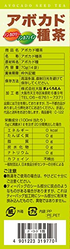 | 原材料 | 【原材料】 アボカド種 【栄養成分】 100mLあたり (5gに沸騰水1Lを注ぎ20分間煮出した場合) エネルギー:0kcal、たんぱく質:0g、脂質:0g、炭水化物:0g、ナトリウム:0g、カフェイン:不検出 ※一般財団法人 日本食品分析センターの分析による |