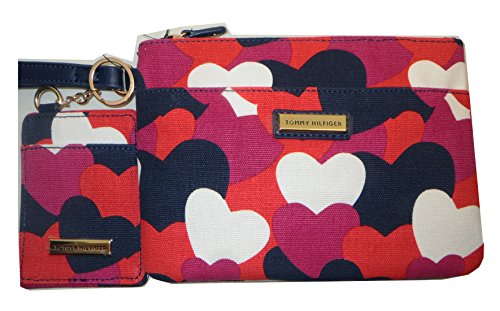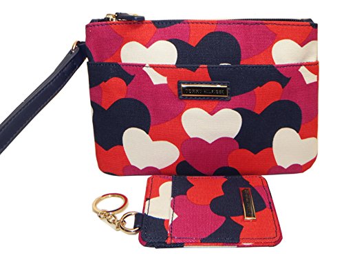 Tommy Hilfiger Heart Wristlet Wallet Keyring 2 pc Canvas