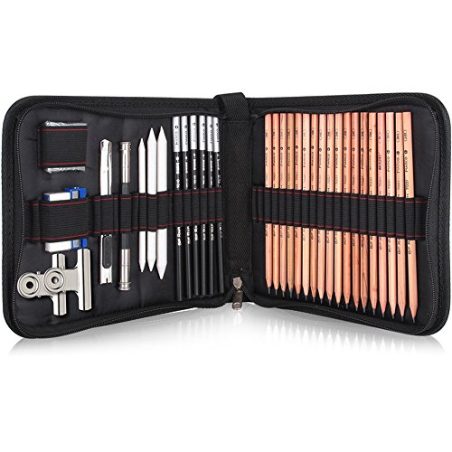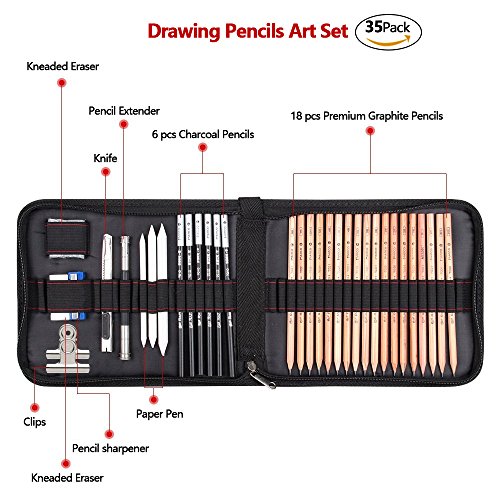 Drawing Pencils Art Set,35-piece Professional Art Kit,Drawing and Sketch Kit with Pencils, Erasers, Kit Bag and Free Clips- Art Supplies, Drawing Pencils, Graphite Pencils, Sketching Supplies