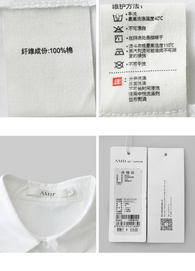 | 洗涤标准: | 不可浸泡悬挂晾干110℃以下垫布熨烫不可漂白不可干洗40℃以下手洗 |