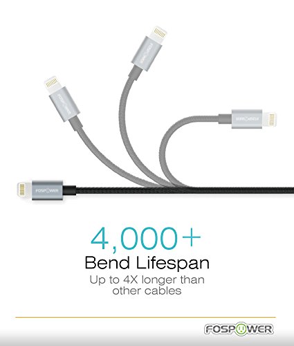 FosPower [2 Pack - 6in] Apple Certified 8-pin Lightning to USB Cable [Nylon Braided|Full Speed Charging] Durable Built for iPhone X (Ten/10) 8 Plus 8 7, iPad Pro Air 2 mini 3, iPod Touch, Nano (Gray)