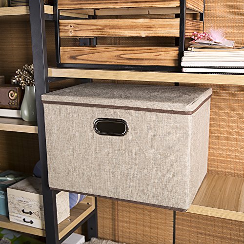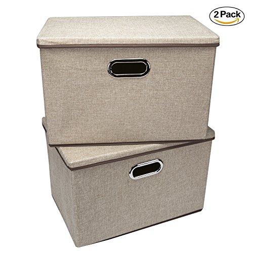 Storage bins,Wecye Large Foldable Storage Containers with Removable Lid and Handles,Storage box Storage cubes Organizer,Set of 2 (Khaki)