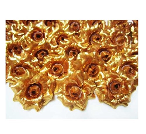 24 Silk Gold Roses Flower Head - 1.75" - Artificial Flowers Heads Fabric Floral Supplies Wholesale Lot for Wedding Flowers Accessories Make Bridal Hair Clips Headbands Dress