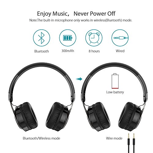 -. Feature : IMPRESSIVE SOUND QUALITY: This item is passive noise isolating, NOT active noise cancellation(ANC), it can't cancel the noise completely but it won't drain the battery and damage the sound. As an additional factor of sound quality, it is better than ANC. The closed-back design provides immersive Hi-Fi sound with CSR chip and 40mm driver together. / WIRELESS and HASSLE FREE: Listening music becomes a hassle free experience with this incredible Bluetooth speakers - no more tangled cables, earplugs slipping out of ears, or ear pain due to uncomfortable ear pads - a perfect design that can be simply paired with any of your bluetooth enabled devices to enjoy seamless high-quality music. / SUPERIOR PERFORMANCE: The speakers use CVC 6.0 broadband noise reduction technology to provide high clarity sound, and can play music for up to 8 hours (standby time 30 hours) with its 300MA explosion-proof polymer rechargeable battery. The noise reduction technology ensures that high quality clear music reaches your soul without any interference. The rechargeable battery can be easily charged through the micro USB port and gets fully charged in just 2.5 hours. / HANDS-FREE CALL & BUILT-IN MIC: The Microphone only works in the wireless mode. Nubwo Bluetooth headphones provide a quick and stable connection with your Bluetooth enabled devices like cell phones, tablets, pc, TVs within 33 feet, with a high-quality built-in microphone for hands-free calls. / COMFORTABLE AND EASY TO USE: The speakers have an ergonomic design with stretchable headband (fits any head),advanced built-in microphone,and comfortable ear pads,you also can fold them into a compact form that's easy to carry everywhere you go.The headphones have low battery alerts,smart power outage when fully charged and even can be used as wired headphone through the 2.5 m long audio cable that comes free with the speaker.