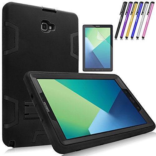 Mignova Heavy Duty Hybrid Protective Case with Build In Kickstand For Samsung Galaxy Tab A 10.1 with S Pen SM-P580 SM-P585 + Screen Protector Film and Stylus Pen (Black / Black)