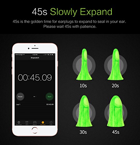 - ★45s Slowly Rebound★Contoured S-shape shape ensures secure fit, and designed to fit comfortably in smaller ear canals while offering superb noise reduction. Physician Recommended: 45s is the golden time for earplugs to expand to seal in your ear. Please wait 45s with patience.