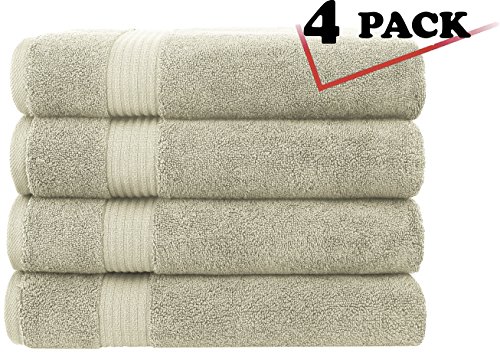 Luxury Hotel & Spa, Turkish Combed Cotton 30x54" Extra Large 4-Piece Bath Towel Set for Maximum Softness and Absorbency by American Soft Linen, Vanilla Beige