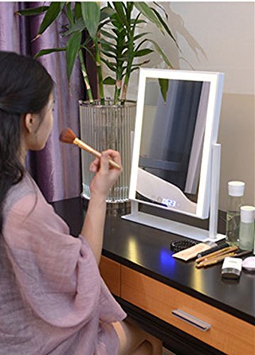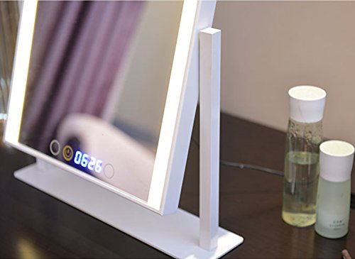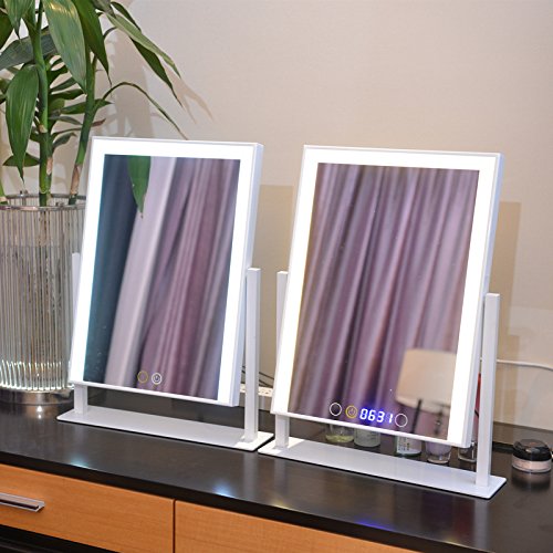 Large Makeup Mirror with Big LED Light Touch Screen Lighted Mirrors Adjustbale Brightness (White With Clock)