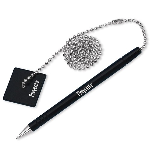 -. Title : PM Preventa Counter Pen With 24" Ball Chain - Black Ink - Black Barrel - 1 Each