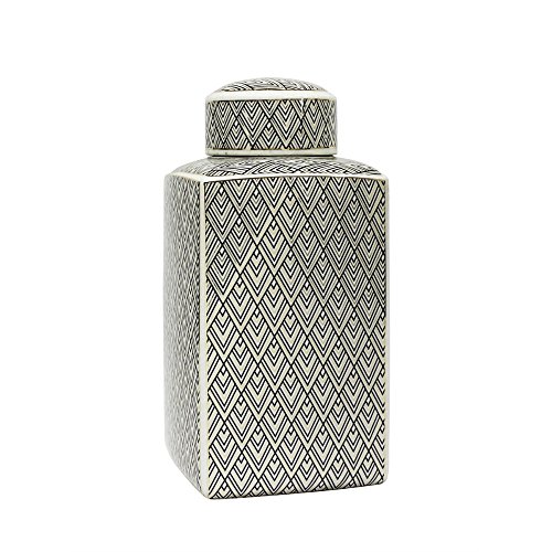 Benzara Ceramic Decorative Chevron Style Jar, Black/White