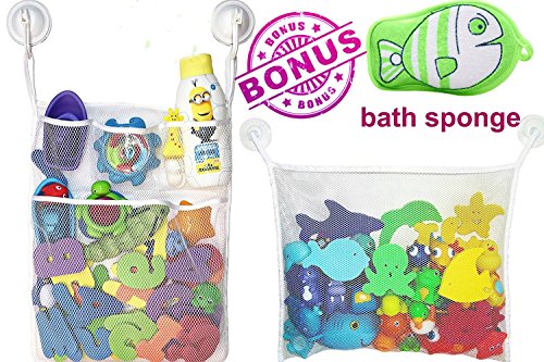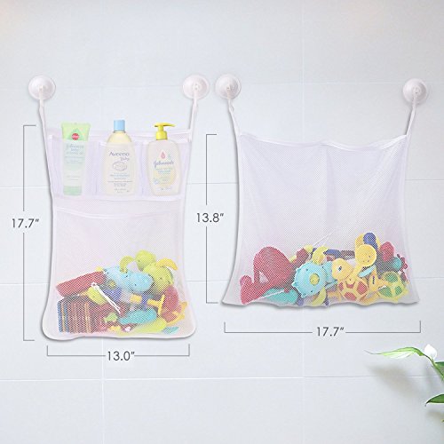 *SET of 2 BATH TOY ORGANIZER. IT'S PROFITABLE: making a purchase from us you get simultaneously two meshes, which are convenient not only for children but for adults usage also. One of them designed for storage of children's toys for playing in water. In the second, you can put your items for shower: soap, basts and shampoos. Now the order in your bathroom is guaranteed, and bathing is your child's favorite occupation! NOTE: TOYS ARE NOT INCLUDED WITH THE ORIGINAL