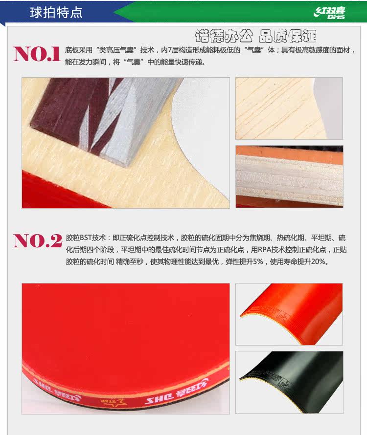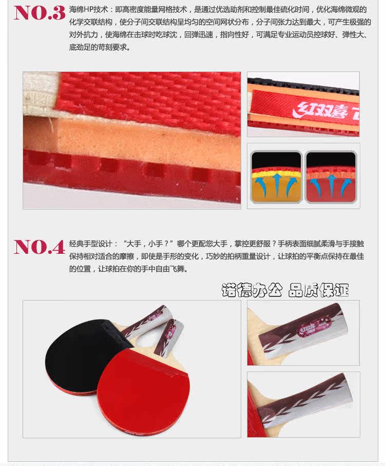 关于球拍声音:上海红双喜公司是专业研发生产乒乓球拍的厂家 对于不同厚度及材质的底板 搭配 硬度不同的胶皮 击球发出的声音 手感 弹性都不同 。