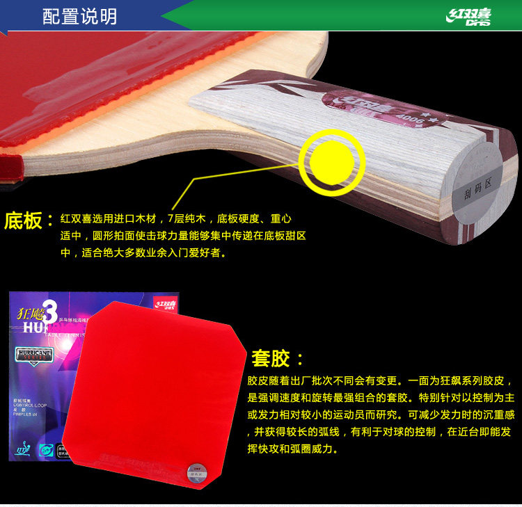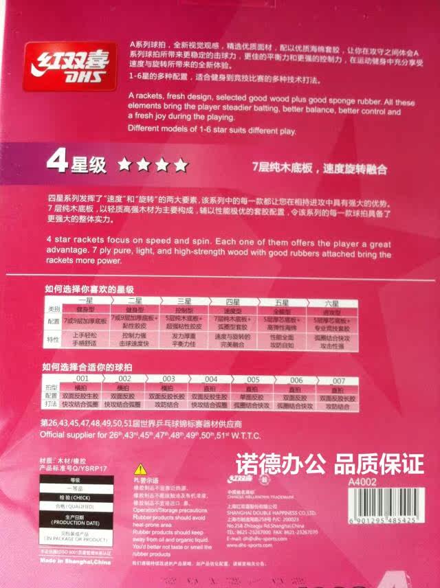 关于退换:本店支持7无理由天退换货 质量问题卖家承担来回运费 非质量问题的退换需要买家支付运费 乒乓球拍退换需要胶皮保护膜完好(不撕开胶皮上面的薄膜 和 防伪码完好)因为结掉保护膜用过的球拍 无法2次销售