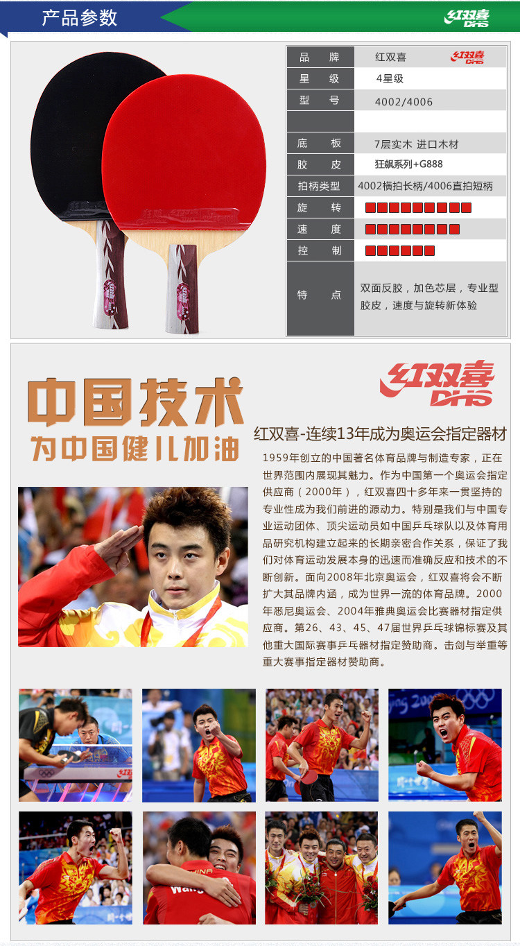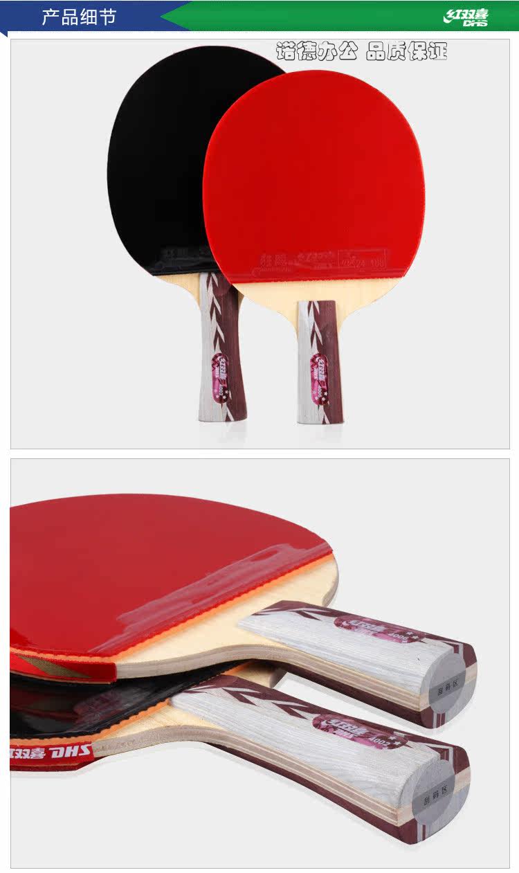 红双喜乒乓球拍都是一支装,如果需要一付(2支)的请拍2件