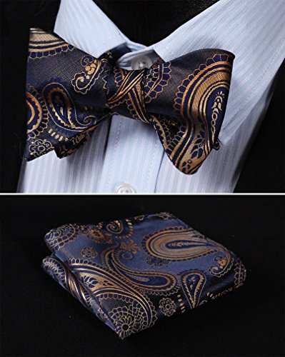 Grosse (Lange x Breite): 4.33 x 2.68 Zoll (11 x 6.8cm); Fur Halsumfang (verstellbar): 12,60-16,93 Zoll (32-43cm); Taschentuch Grosse: 10 x 10 Zoll (25 x 25cm); Handwerk: Jacquard gewebte Fliege; Lieferumfang: Fliege und Taschentuch