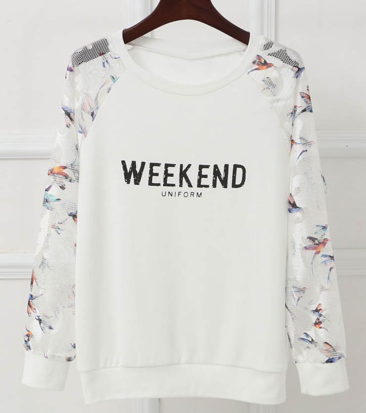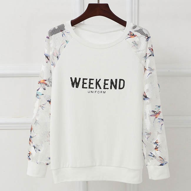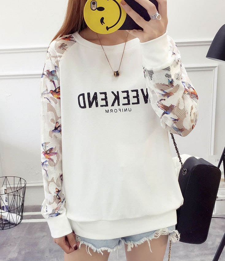 【入荷後営業日2,3日以内出荷予定 通関待ちや不良により出荷遅くなる場合はメールにてご連絡いたします。メール受信設定によっては正常に受信されない場合はございますので、 弊社からのメールを予め受信頂くようご設定くださいませ。】 トップス スエット スウェット 長袖 ラウンド襟 丸首 英字 レディス レディース 春 新作 2018小鳥柄切り替えレディーススウェットトップス◆サイズ:M着丈58袖丈61胸囲84L着丈59袖丈62胸囲88XL着丈60袖丈63胸囲922XL着丈61袖丈64胸囲96◆素材:コットン85%+ポリエステル15%
