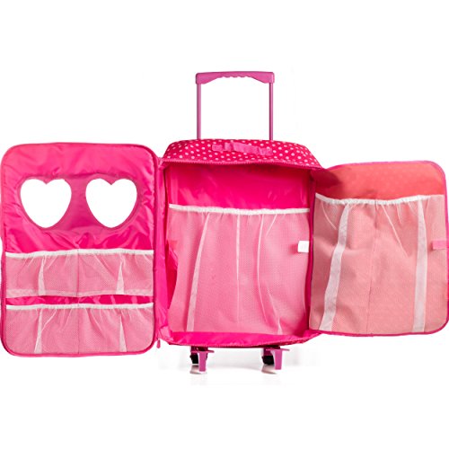 Fits 18'' doll, trolley has 2 large pockets and 2 smaller pockets for easy storage.