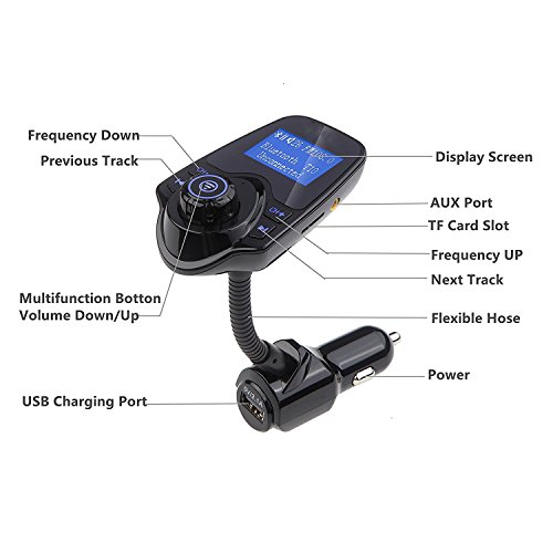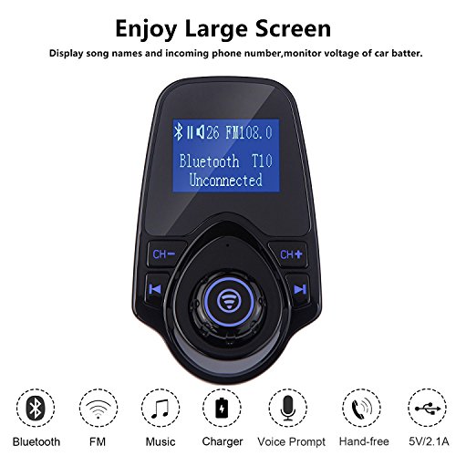 - Larger Display Screen: 1.44 inches screen provides clear display: Current playing Song's Name, Voltage of car battery,incoming phone call number.