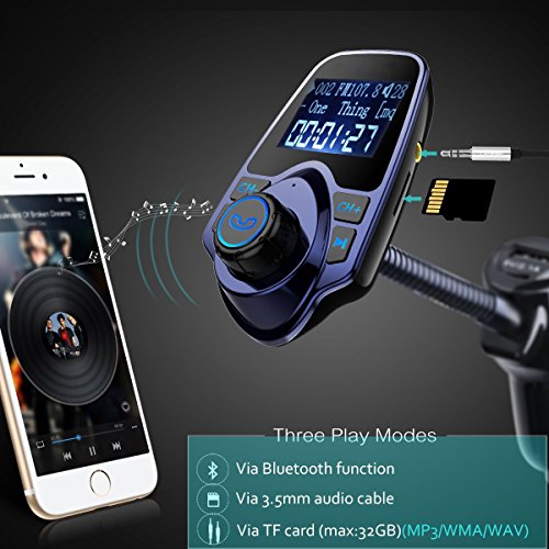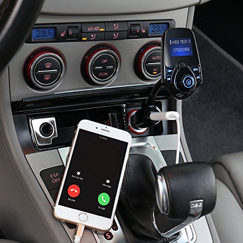 ALANNI Bluetooth FM Transmitter, Wireless In-Car FM Transmitter Radio Adapter Car Kit with AUX Input TF Card Slot USB Charging Port and Hands-free Calling and 1.44 Inch Display