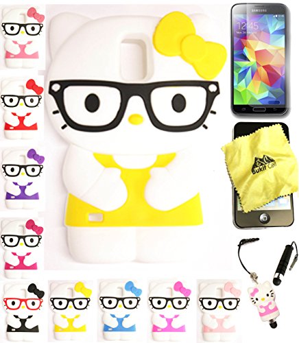 -. Title : Bukit Cell ® Galaxy S5 Hello Kitty Nerd Case Bundle - 5 Items: 3D Hello Kitty (with Glasses) Soft Silicone Case Cover for Samsung Galaxy S5 V i9600 + BUKIT CELL Trademark Lint Cleaning Cloth + Hello Kitty Figure Anti Dust Plug Stylus Touch Pen + Screen Protector + METALLIC Stylus Touch Pen with Anti Dust Plug