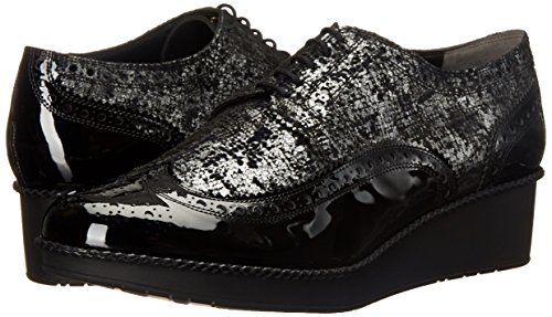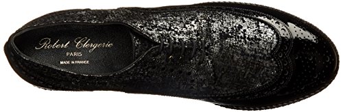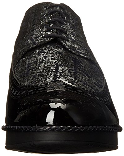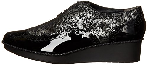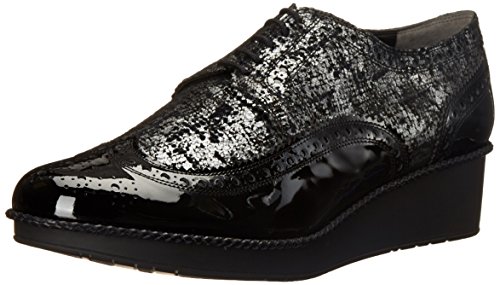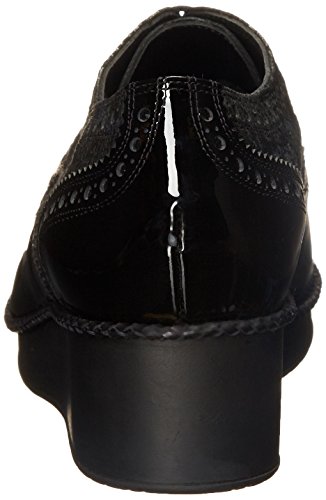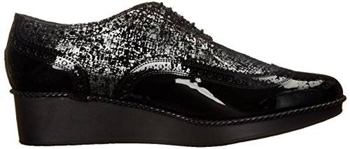 -. Feature : Modern oxford in metallic tweed suede featuring wing-tip overlays in patent leather / Classic brogue and pinking trims / Wedge heel