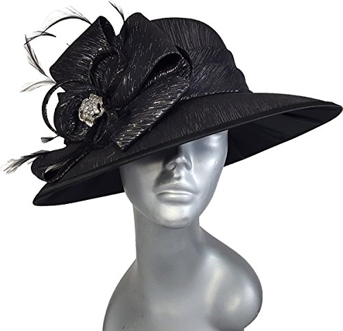 Binding : Apparel Product Description Product description The Black/Silver Metallic hat by Swan Hat is crafted with hard felt and covered with metallic satin fabric is for ladies who like to shine in the crowd with the metallic silver hat you will be envied for friends also this is a fantastic headpiece to match with for your outfit Feel like a Queen in an instant with The Black.Silver Metallic Hat. The Black/Silver Metallic hat features a satin headband wrapped around the crown, the feathers, the loops and the metallic silver bow attached to the right eye of the hat makes of this hat a unique piece added a Luxury touch to your outfit Perfect for everyday wear a fancy event, Kentucky Derby, Grand National, Melbourne Cup, weddings, wedding, church or religious gatherings. Great for ladies, and teens and girls. Great for multiple seasons. Will compliment any outfit. 0