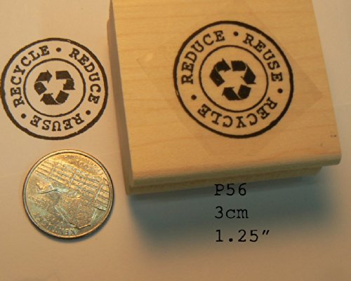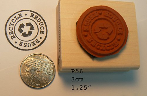 Recycle, reduce, reuse, rubber stamp. wood mounted and deep etched. Measures 1.25"