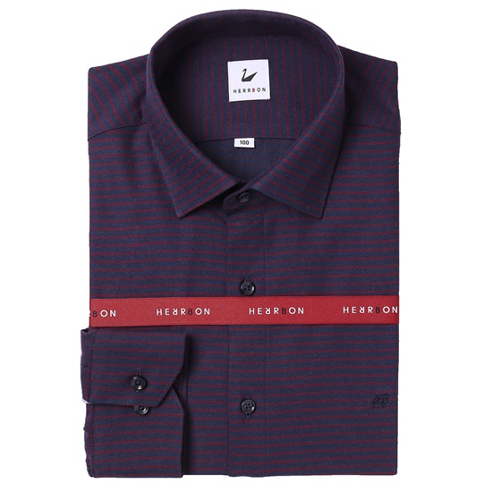 -면혼방소재의 멀티무늬의 캐주얼 슬림핏 기모남방셔츠.