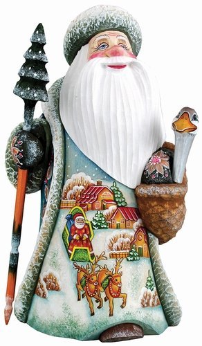 G. Debrekht Santa with Goose Hand-Painted Wood Carving