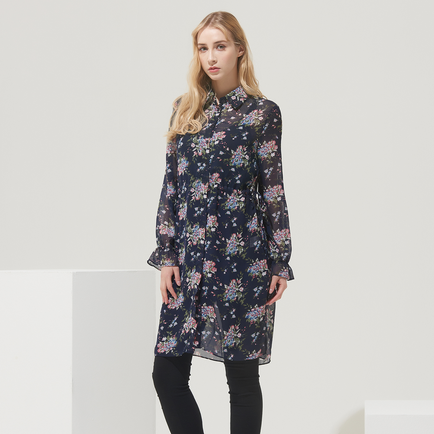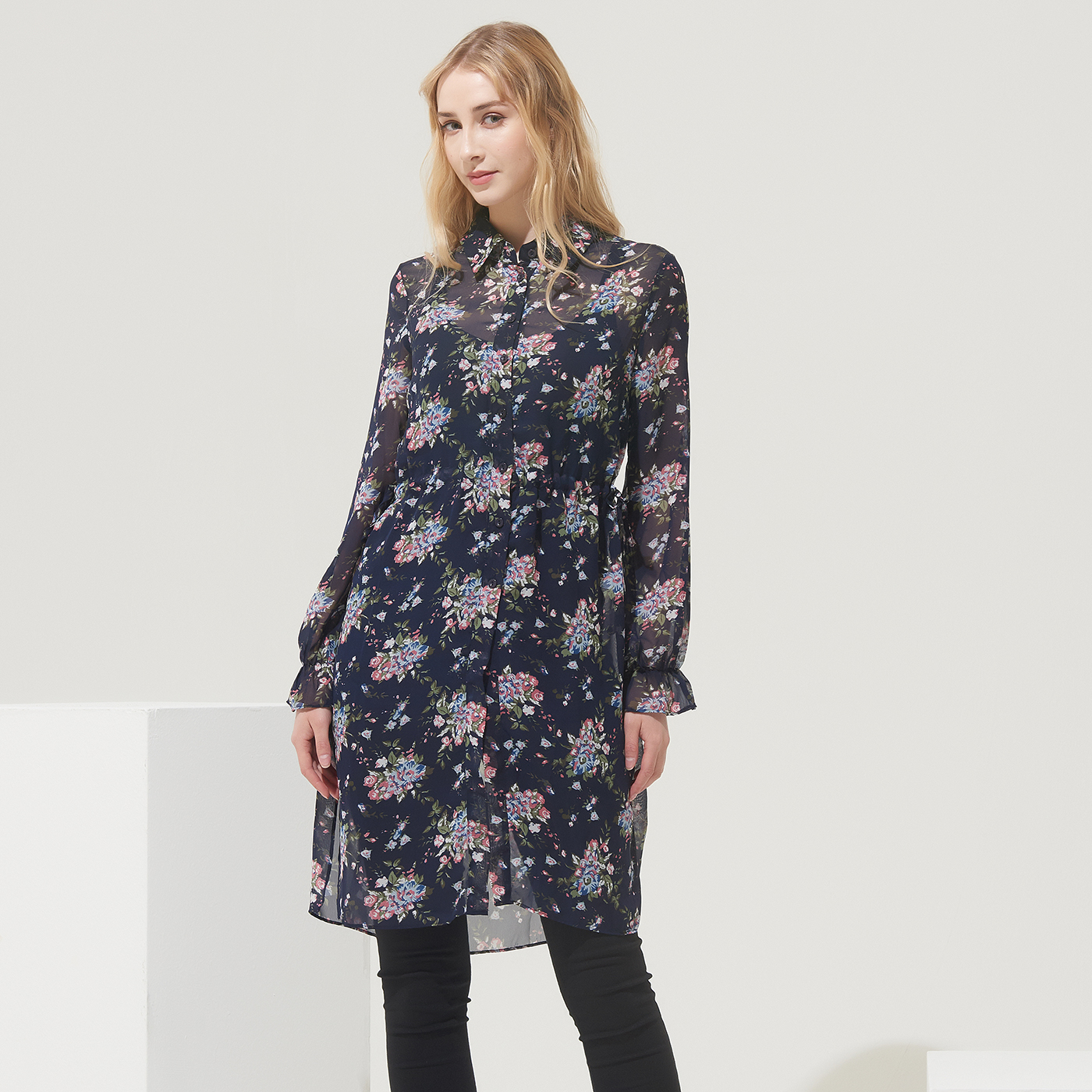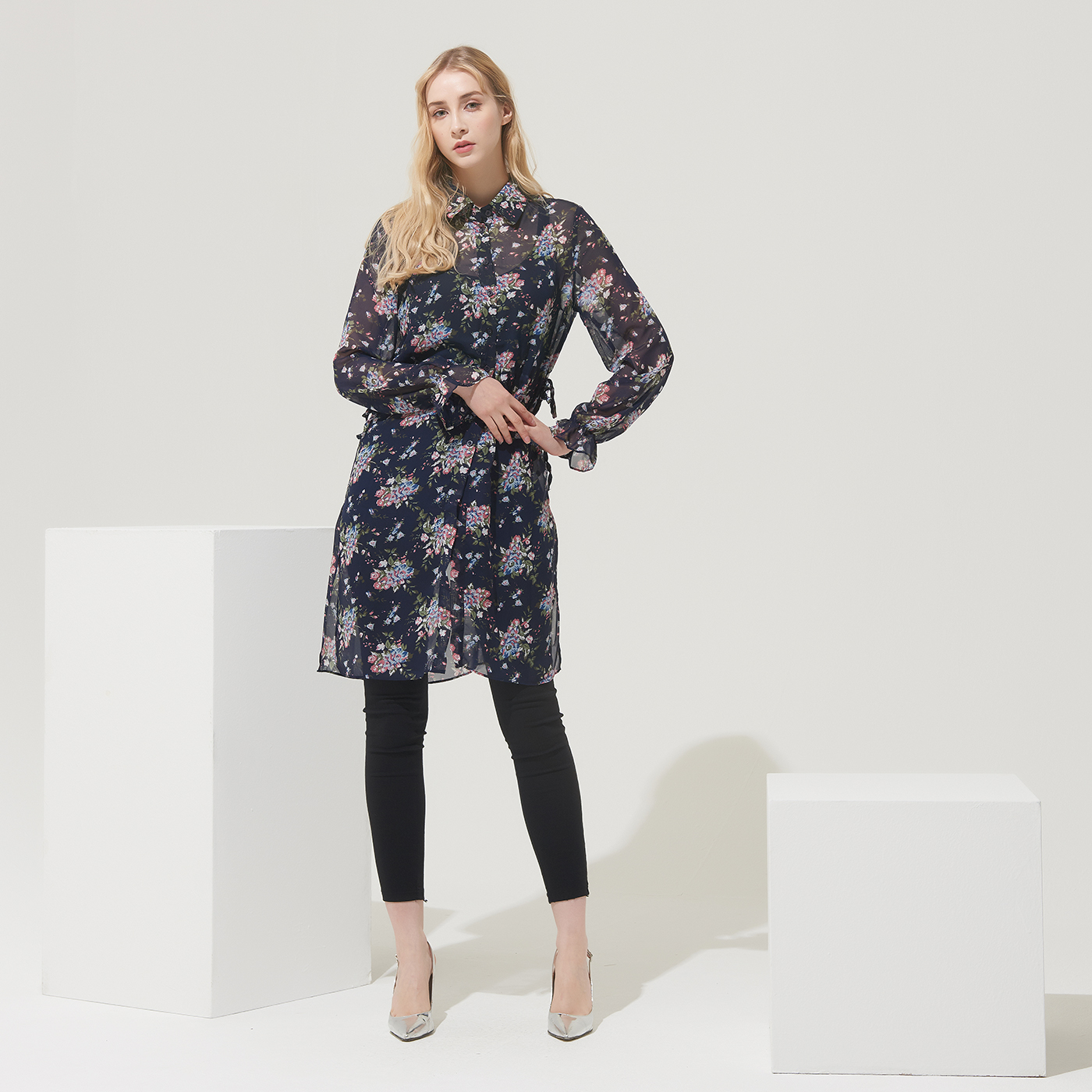 고급스런 플라워 프린트의 롱 셔츠로 오픈해서 가디건처럼 코디해도 멋진 디자인입니다