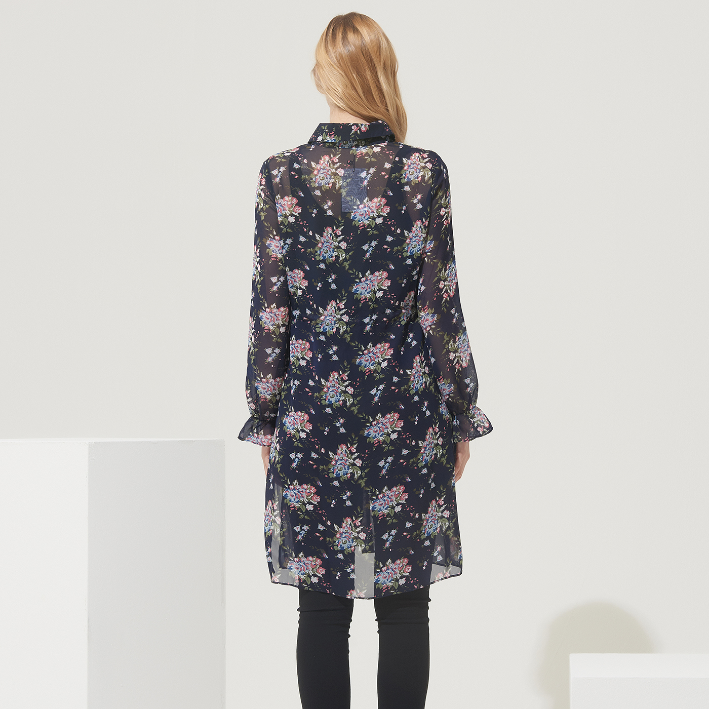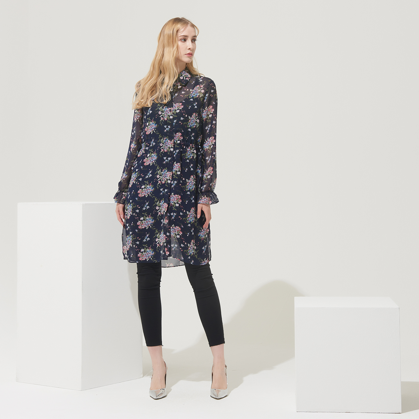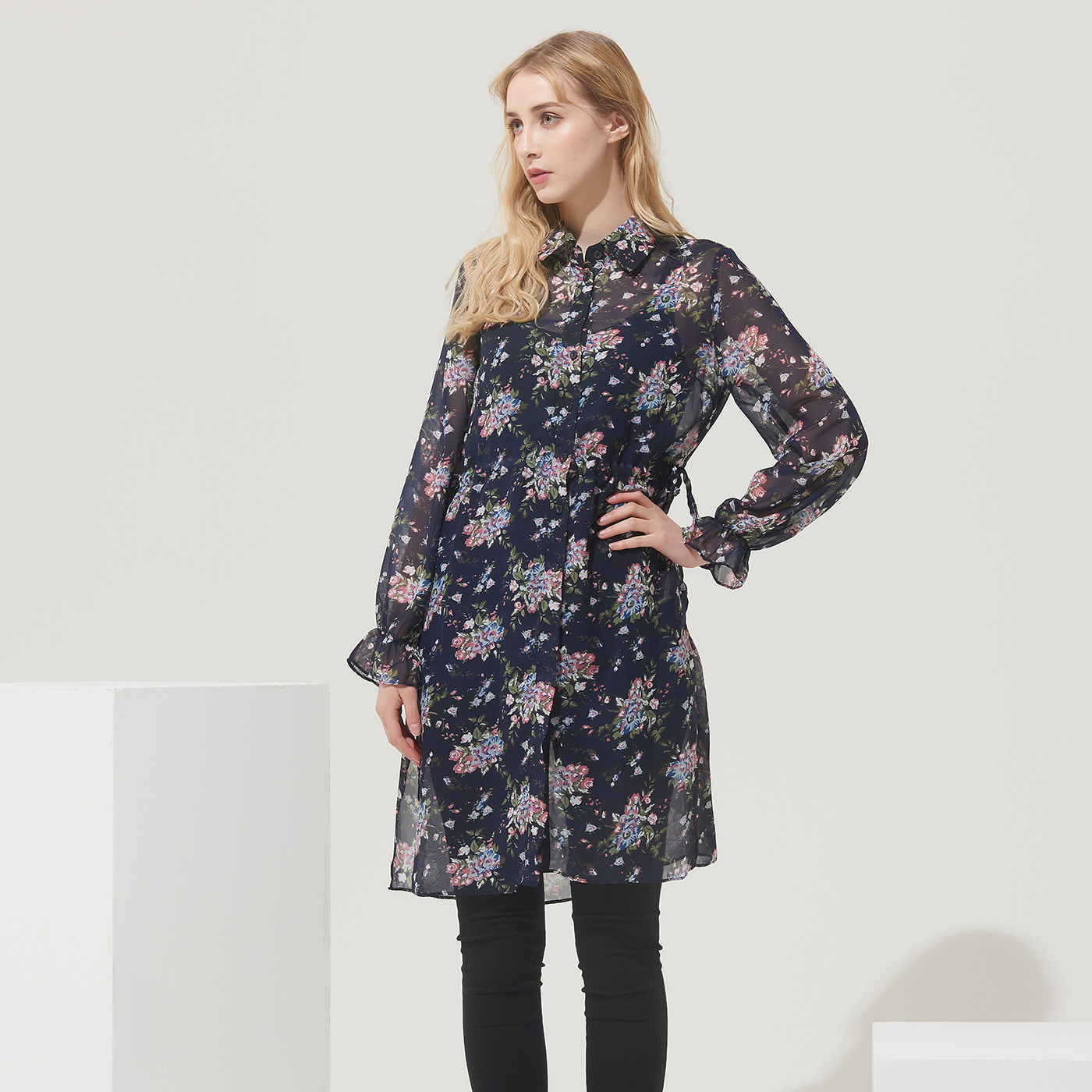 고급스런 플라워 프린트의 롱 셔츠로 오픈해서 가디건처럼 코디해도 멋진 디자인입니다