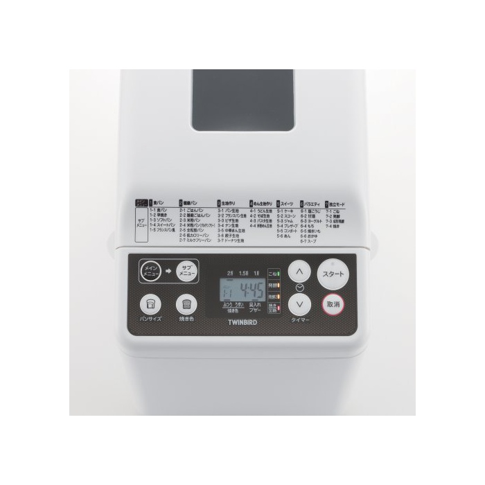 제품 개요 사양 2:메뉴1식빵:1-1 식빵/1-2 조구이/1-3 소프트 빵/1-4 스위트 빵/1-5 프랑스 빵풍,메뉴2건강 빵: 2-1 밥 빵/2-2 잡곡 밥 빵/2-3 미분 빵/2-4 미분 빵(글루텐 프리)/2-5 전입분빵/2-6 저 칼로리 빵/2-7 밀크 프리 빵,메뉴3원단 만들기: 3-1 빵 원단 만들기/3-2 프랑스 빵 원단 만들기/3-3 피자 원단 만들기/3-4 난 원단 만들기/3-5 중 화#지 않겠 원단 만들기/3-6 만두 원단 만들기3-7/도너츠 원단 만들기 고, 메뉴4 면 원단 만들기: 4-1 우동 원단 만들기/4-2 옆(소바) 원단 만들기(양식)/4-3 파스타 원단 만들기/4-4 미분 면 원단 만들기,메뉴5스위트: 5-1케익/5-2 《스콘》/5-3 잼/5-4 프리 자부/5-5 콤포넌트 스테레오《―토》/5-6 아지 않겠다,메뉴6버라이어티: 6-1 소금 이렇게 하다/6-2 감주/6-3 요구르트/6-4 떡/6-5 소키이도/6-6 죽/6-7 스프,메뉴7독립 모드: 7-1 반죽하다/7-2 발효/7-3 성형 발효/7-4 구이