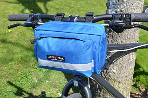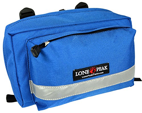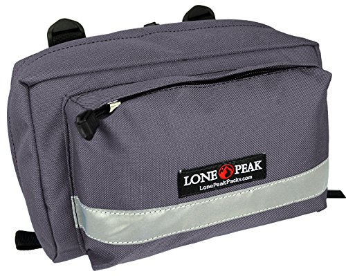 Studio : Lone Peak Publisher : Lone Peak Product Description A multi-adjustable, three point suspension system fits virtually all handlebars without needing shock cords to attach to your fork. Full length stiffener maintains pack's shape. An external pocket is great for small items. Made of 1000 denier Cordura® nylon. 330 cu. in. Wt. 9 oz. Dimensions: 9.5" x 7" x 4.5". 0