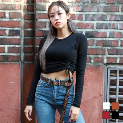 사선 셔링으로 포인트되는 크롭티셔츠를 소개합니다 :-) 라운드넥의 긴팔로 지금부터 초겨울까지 입기 좋은 크롭티셔츠입니다!