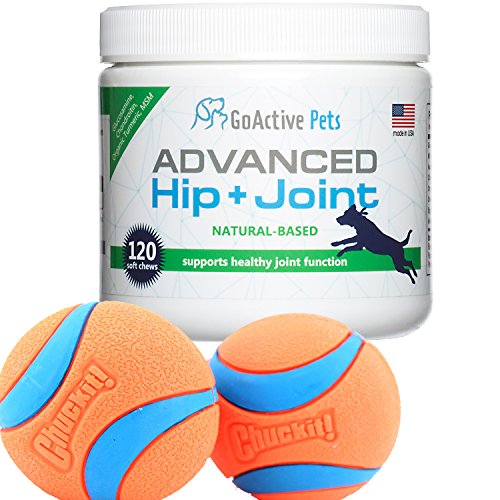 ADVANCED HIP & JOINT SUPPLEMENT BUNDLED WITH CHUCKIT! ULTRA BALL - This bundle includes our best-selling Hip & Joint Supplement along with 2 medium sized (2.5 - Inch) Chuckit! Ultra balls. Developed to have high bounce, high buoyancy, high visibility, and high durability. The Chuckit! Ultra Ball promises to outplay the ordinary. With the use of GoActive Pets Hip & Joint supplement, get your dog active again playing fetch and chasing around their new favorite ball!