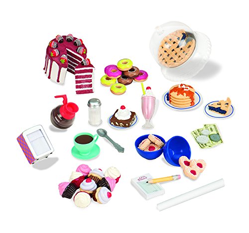 - INCLUDES 89 PLAYABLE ACCESSORIES - This play set is a complete classic restaurant ready to entertain all your friends. It comes with 89 completely playable accessories, including silverware, food, stools, knives, condiments, and of course, the awesome diner itself. See the description for the full list.