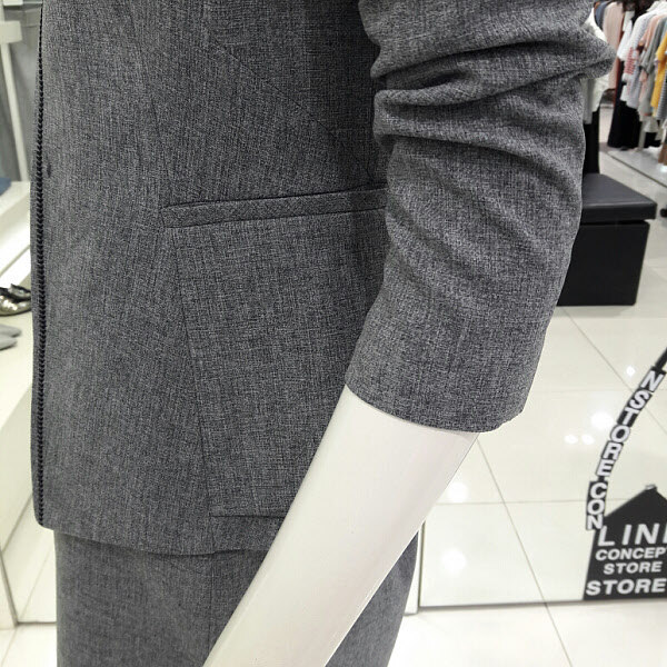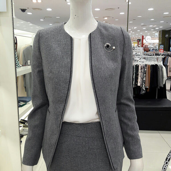 라운드목선이 부드러우면서도 단정한 분위기의 심플한 노카라정장자켓입니다 세트로 나온 스커트와 코디하셔도 되구요 단품으로 바지나 원피스에 레이어드하셔도 예쁘구요 신축성도 살짝있어서 활동하기 편하구요 면접용으로추천합니다