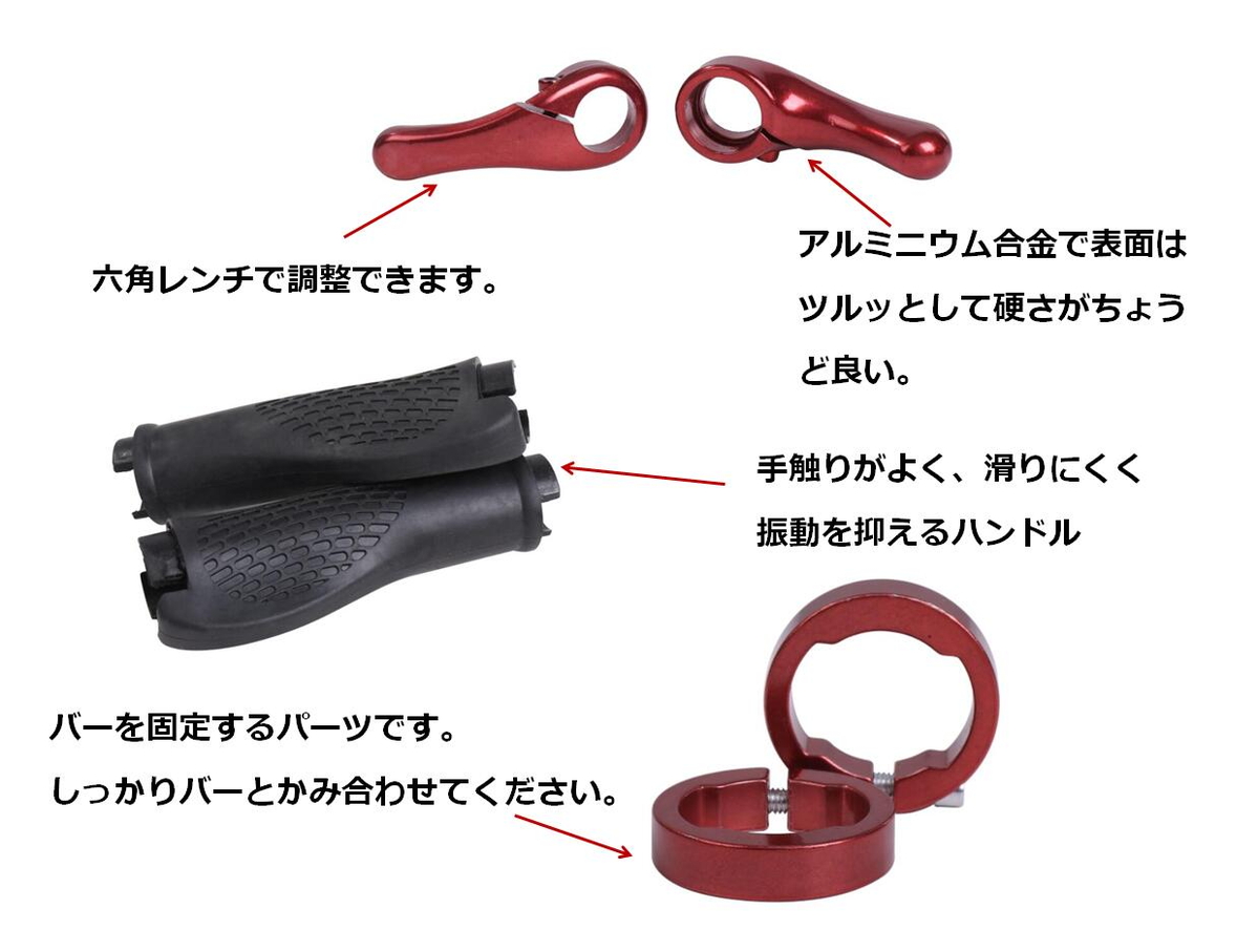 クールで 体に優しい 自転車 MTB グリップ ハンドルグリップ グリップエンド 幅広グリップ レッド