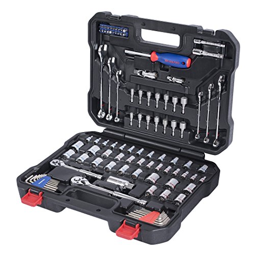 WORKPRO 101-piece Socket Wrench Set with 3/8 and 1/4 Inch Drive Quick-Release Ratchet