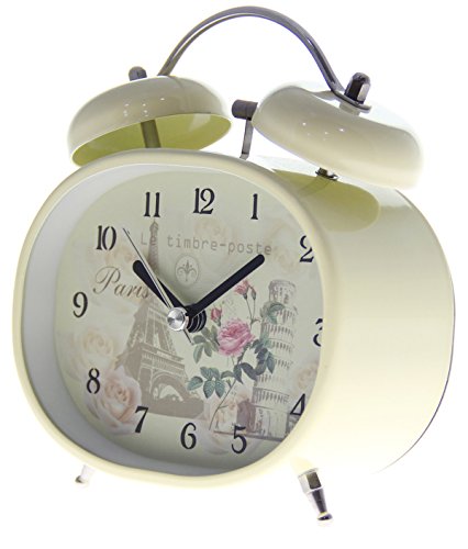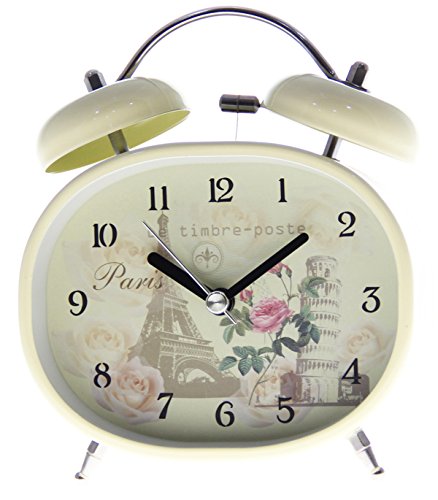 JustNile Bedside Twin Bell Alarm Clock with Backlight - 4" Tower/Rose in Beige