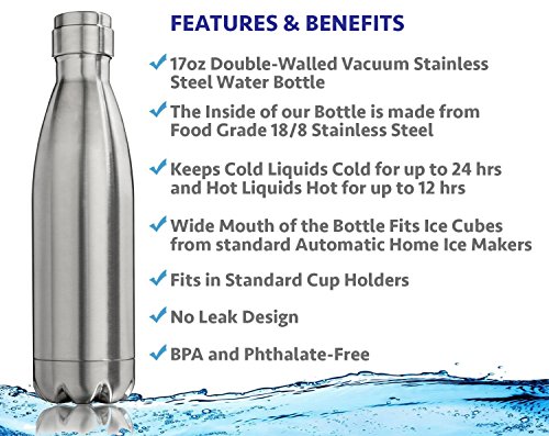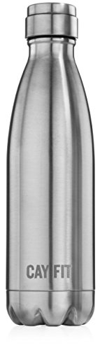 UNMATCHED QUALITY: Cayman Fitness 17 oz double walled vacuum stainless steel water bottle is made from 18/8 stainless steel, both inside and out. Our materials and design provide one of the strongest, heavy duty bottles on the market. Durable and lightweight, it can take a beating and still provide you with an ice cold drink.