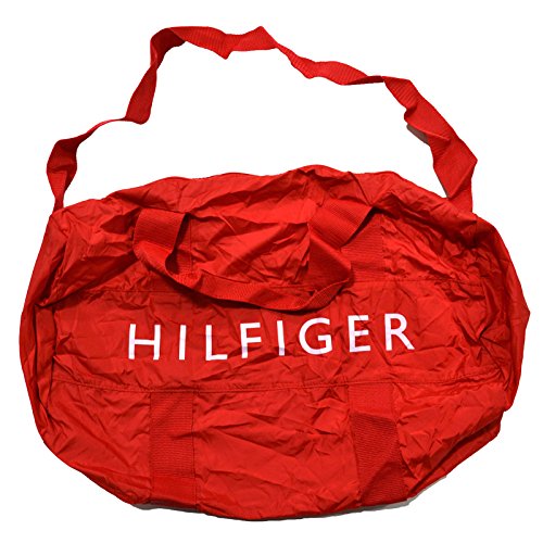 -. Brand : Tommy Hilfiger -. Color : Red -. Department : mens -. EAN : 0751197193807 -. Feature : Large Duffle Bag / Packable into outside pocket / 2 small carrying straps as well as 1 large shoulder strap / Zipper Closure / Lightweight -. ProductGroup : Apparel -. ProductTypeName : LAGE -. Size : One_Size -. Title : Tommy Hilfiger Packable Duffle Bag Red -. UPC : 751197193807