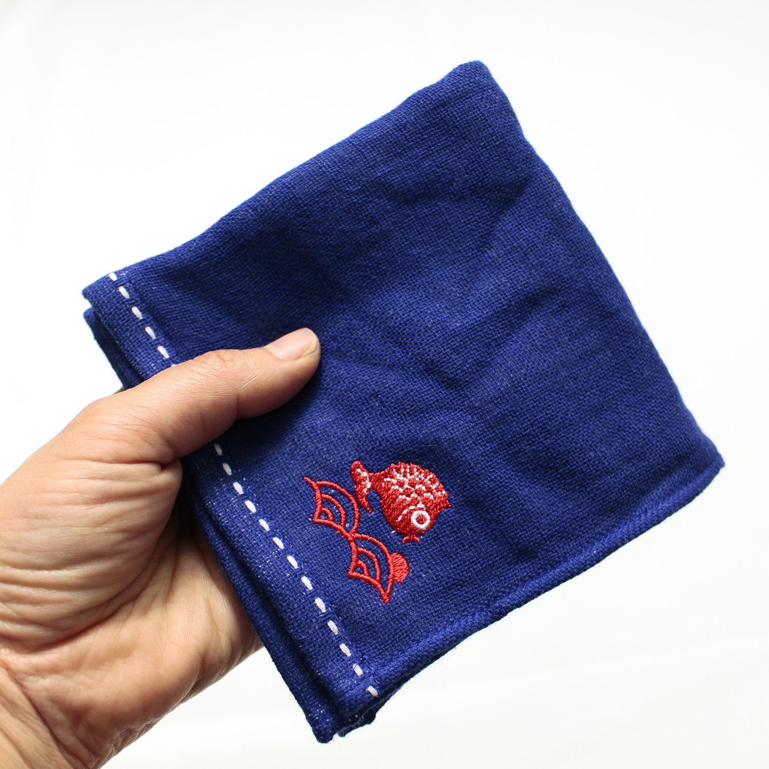 ● One point for beautiful indigo, accented with red color embroidery