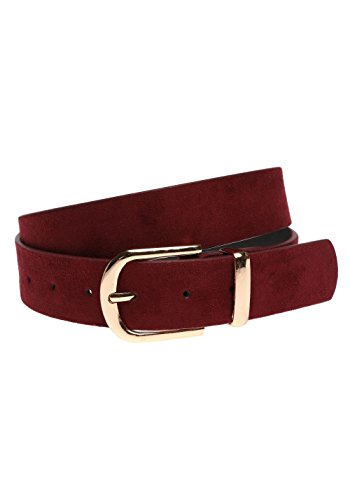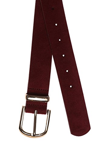 Product DescriptionBurgundy faux leather belt with gold-toned buckle. 100% Faux leatherImported 42.5' belt length0