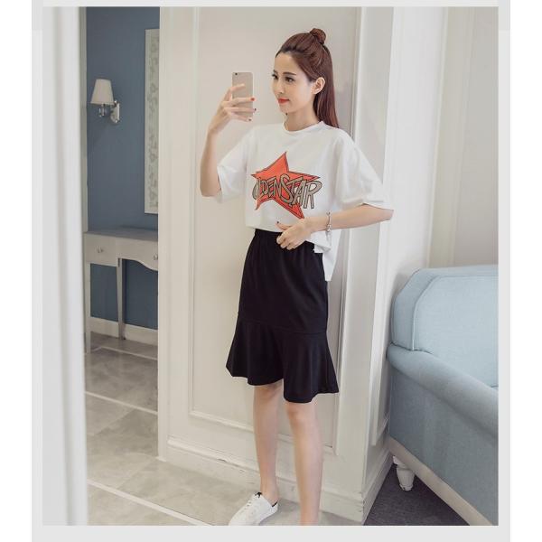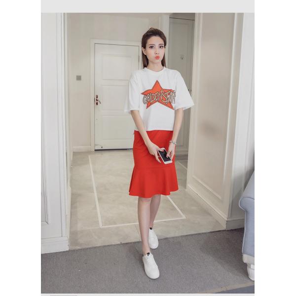 プリント柄Tシャツとスカートのセットアップです。