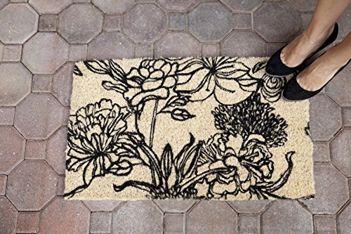 -. Title : Ink Bouquet Hand Woven Coir Doormat