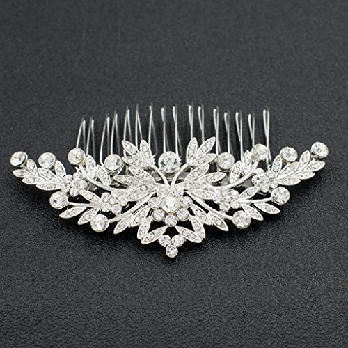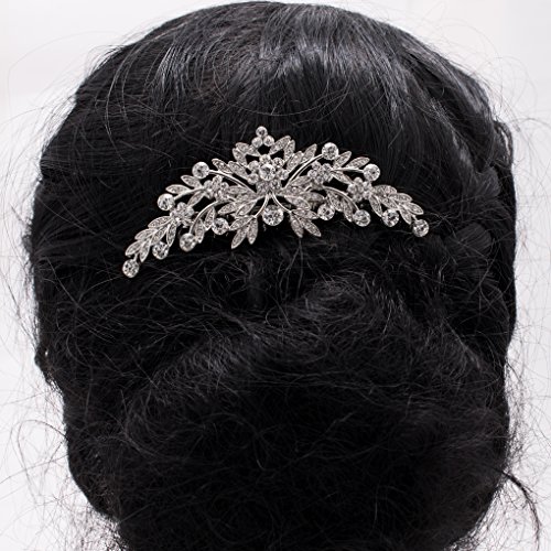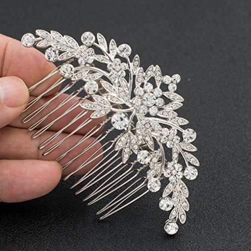 SEPBRDIALS Rhinestone Crystal Wedding Brides Leaves Hair Comb Pins Pieces Accessories Jewelry FA5088 (Silver)