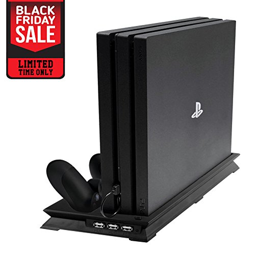 Superb ps4 stand - no more overheating for your standard ps4! The ps4 stand consists of a console vertical stand with dual cooling fans, dualshock controller charging stations, and 3 hub ports.