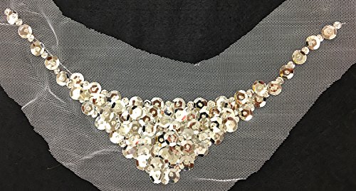 Product Description 2 pc Front and back Silver Sequins Applique V Shape * 11" x 2.25" Silver Sequins Neckline Collar Applique , use it on any dress , bikini , 0