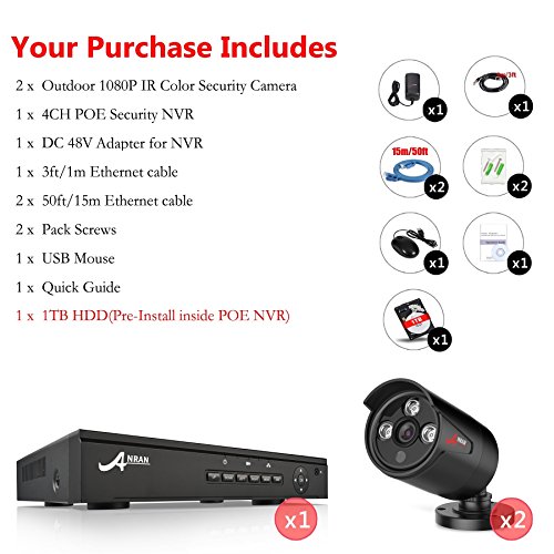 -. Title : (With 1TB HDD )ANRAN 8CH 1080P Secuirity POE Camera System with (4) 1080P 2.0 Megapixel POE IP In/Outdoor Cameras ,Power over Ethernet,Freely Remote view,Intelligent Email Alert System